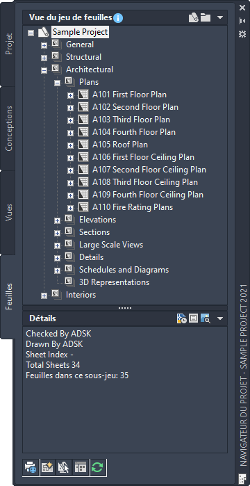 Jeu de feuilles du projet dans le Navigateur du projet Jeu d’outils AutoCAD Architecture 2027