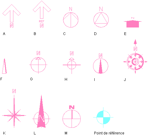 Symboles de flèche Nord et point de référence