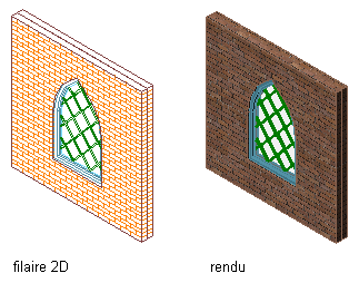 Dans Jeu d’outils AutoCAD Architecture 2027, vous pouvez affecter des matériaux à une fenêtre. Ces matériaux sont ensuite affichés en vue filaire ou en vue de rendu. Les matériaux présentent des paramètres spécifiques s'appliquant aux composants d'une fenêtre (dormant, châssis ou montants intermédiaires, par exemple).