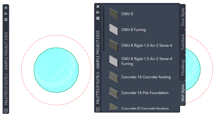 Cette procédure permet de masquer le jeu de palettes d'outils lorsque vous ne l'utilisez pas. Le jeu de palettes d'outils est masqué lorsque vous en éloignez le curseur. Seule sa barre de titre est alors visible. Lorsque vous positionnez le curseur sur la barre de titre, le jeu de palettes d'outils est de nouveau affiché.