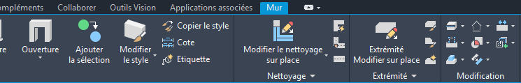 Onglet Modifier sur place pour les extrémités de mur