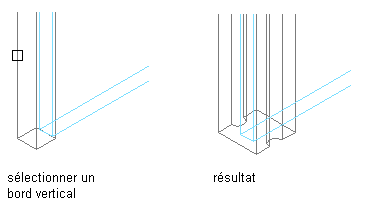 Vous pouvez affecter un profil à n'importe quel bord vertical de dormant ou de meneau. Il peut s'agir d'un profil ou d'une polyligne fermée que vous spécifiez. Vous pouvez utiliser un bord de profil pour créer un coin unique dans les cas où un simple onglet ne suffit pas.