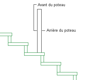 Spécifiez l'orientation du poteau par rapport aux directions haut et bas sur un déploiement d'escalier en vue d'élévation, comme représenté dans l'illustration suivante :