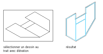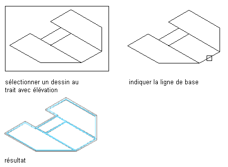 Conversion d'un dessin au trait en murs-rideaux à l'aide de l'option de ligne de base spécifiée
