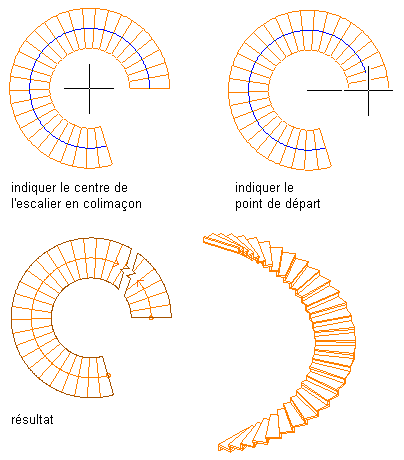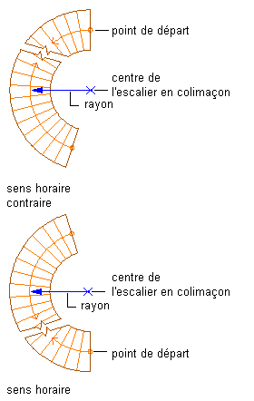 tracer l'escalier en colimaçon dans le sens des aiguilles d'une montre sélectionnez l'orientation horizontale correspondant au sens des aiguilles d'une montre.