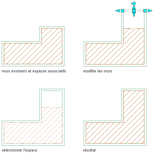 Vous pouvez mettre à jour tous les espaces associatifs du dessin ou une sélection d'espaces.