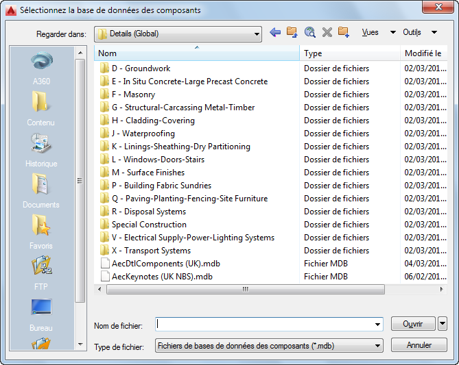 - Dans la fenêtre Sélectionnez la base de données des composants, recherchez la base de données qui vous intéresse et cliquez sur Ouvrir.