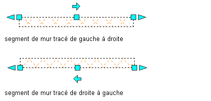 La direction du mur est un critère important pour certaines modifications apportées à celui-ci. Les styles de murs fournis avec Jeu d’outils AutoCAD Architecture 2027 ont été créés pour que vous placiez les murs du périmètre dans le sens horaire. Une fois que vous avez placé un mur, vous pouvez en déterminer la direction en le sélectionnant. La poignée de direction du mur pointe dans la direction qui est la sienne. Vous avez également la possibilité d'inverser la direction d'un mur.