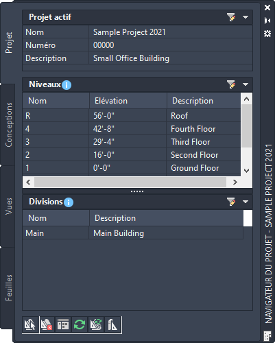 L'onglet Projet de la palette du navigateur du projet permet d'entrer des informations relatives à l'ensemble du projet.
