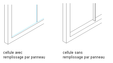 Cette procédure permet de supprimer l'élément de remplissage d'une cellule et de laisser la cellule vide. Pour ce faire, sélectionnez Aucun comme définition d'élément. Cette option supprime également les bords de dormant autour de la cellule, mais elle est sans effet sur les meneaux.