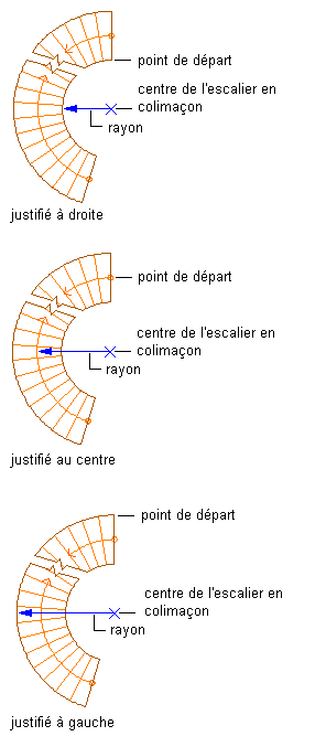Le rayon est mesuré entre le point central de l'escalier en colimaçon et le point de justification sélectionné.