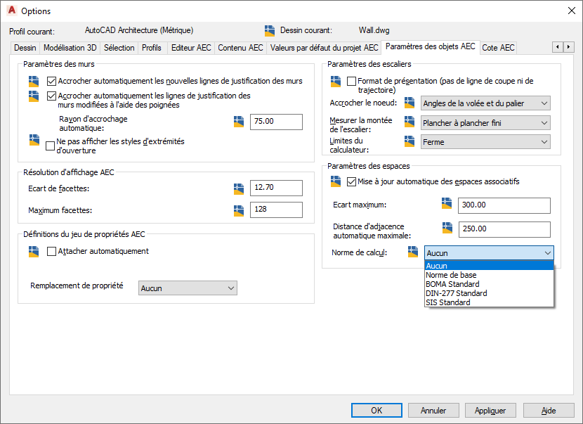 La méthode AecSpaceOffsetStandard.SetName() est implémentée dans la classe de base et ne peut pas être supprimée. Elle doit être appelée afin d'enregistrer un nom pour la norme dans le constructeur de la classe. Ce nom s'affiche dans la liste des normes de calcul d'aire disponibles dans Jeu d’outils AutoCAD Architecture 2027.