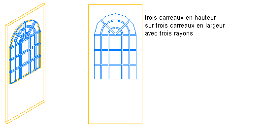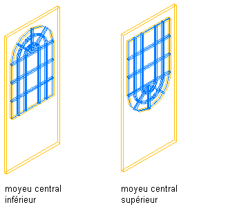 Vitre de porte demi-circulaire avec montants intermédiaires en étoile