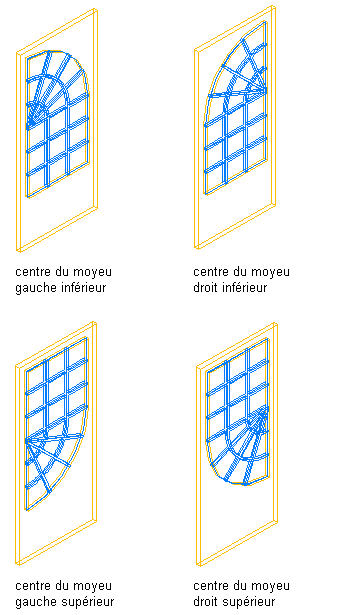 | placer le moyeu en haut à droite d'une forme de type quart circulaire | sous Moyeu, sélectionnez En haut, à droite. |