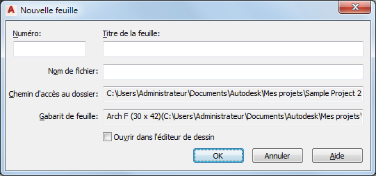 entrez un numéro. Si vous avez choisi un préfixe de projet dans les paramètres du projet, le préfixe est placé devant le numéro de feuille dans le nom de fichier. |