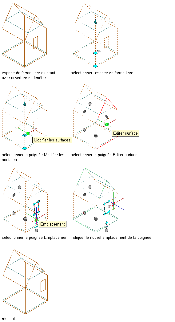 Cette procédure permet de déplacer une ouverture dans une surface d'espace 3D de forme libre.