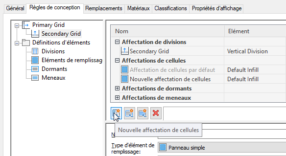 Pour remplir une cellule de mur-rideau à l'aide d'un panneau simple