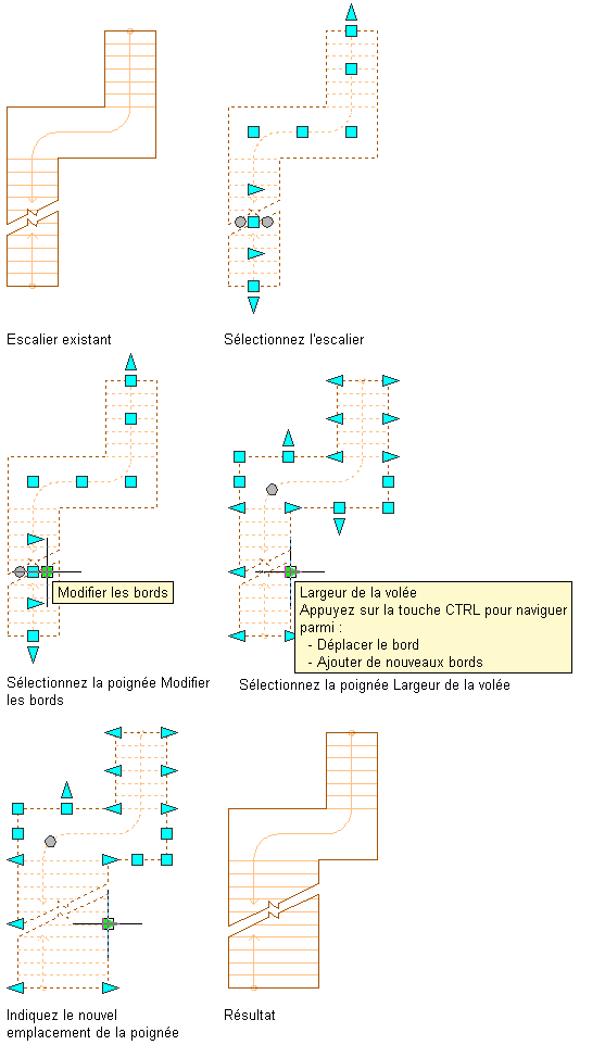 Utilisation des poignées pour modifier la largeur d'une volée d'escalier