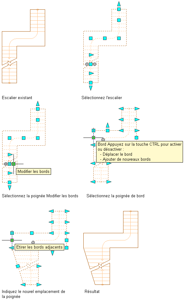 Utilisation des poignées pour modifier la largeur d'un palier d'escalier