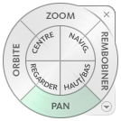 Les disques de navigation SteeringWheel peuvent vous permettre de gagner du temps, car ils combinent les outils de navigation courants dans une interface unique. Les disques sont spécifiques à des tâches et vous permettent de naviguer ainsi que d'orienter un modèle dans des vues différentes.