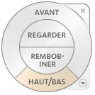 Lorsque vous placez le curseur au-dessus d'un bouton d'un disque de navigation, une info-bulle s'affiche sous le disque de navigation. Elle indique quelle action la section ou le bouton effectue lorsque vous cliquez dessus.