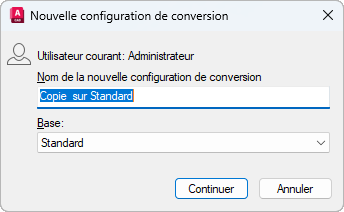 Sélectionnez une configuration de conversion existante qui servira de base à la nouvelle.