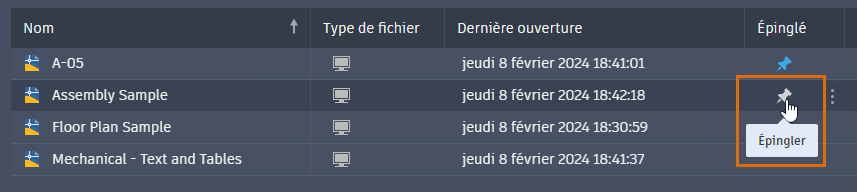 Lorsque vous épinglez un fichier, il reste affiché en haut de la liste jusqu'à ce qu'il soit détaché.