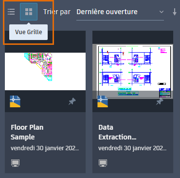 - Au-dessus des documents, choisissez une vue sous forme de grille, qui affiche des miniatures et du texte, ou une vue sous forme de liste, qui affiche du texte uniquement.