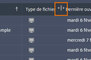 Faites glisser la barre verticale entre les en-têtes de colonne pour ajuster la largeur des colonnes.