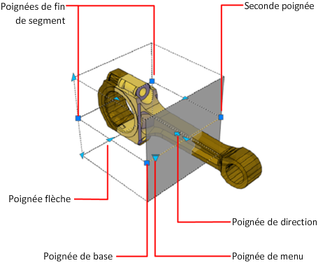 Les poignées vous permettent d'ajuster l'emplacement, la longueur, la largeur et la hauteur de la zone sécante.