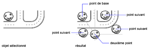 La commande COPIER permet de créer plusieurs copies du jeu de sélection spécifié et du point de base. Les options sont les suivantes :