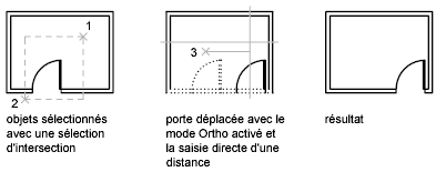 Voici un exemple pratique de déplacement d'une porte sur un mur. Dans cette illustration, la porte se trouve entièrement dans la sélection de capture, alors que les lignes représentant la cloison ne sont que partiellement comprise dans la zone de sélection de capture.