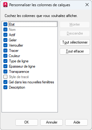 CALQUE (commande) Trouver: cliquez avec le bouton droit de la souris sur n'importe quelle étiquette de colonne de calques > Personnaliser