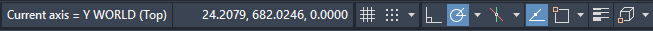 L'icône du SCU avec les lignes d'axe RTUCS et la ligne d'état affichent les informations sur l'axe courant :