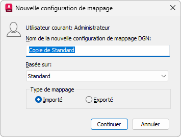 Permet de configurer le mappage pour l'importation ou l'exportation de fichiers DGN.