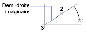 A partir du centre (2), dessine un arc dans le sens trigonométrique entre le point de départ (1) et un point d'arrivée situé sur une demi-droite imaginaire tracée entre le centre et le troisième point (3).
