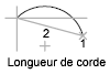 Si la longueur de corde est positive, le petit arc est tracé dans le sens trigonométrique à partir du point de départ. Si la longueur de corde est négative, le grand arc est tracé dans le sens trigonométrique.