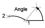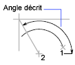 Dessine un arc dans le sens trigonométrique à partir du point de départ (1), en utilisant un centre (2), avec un angle décrit spécifié. Si l'ange est négatif, un arc est tracé dans le sens horaire.