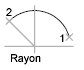 Dessine le petit arc dans le sens trigonométrique entre le point de départ (1) et l'extrémité (2). Si le rayon est négatif, le grand arc est tracé.