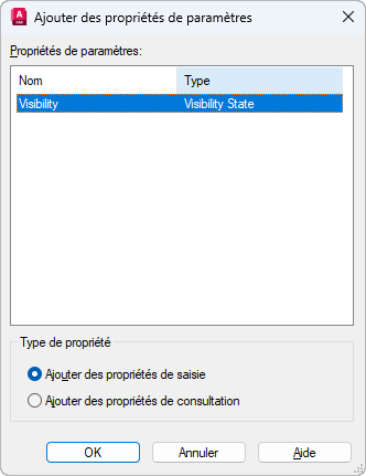 Spécifiez le type de propriété à ajouter dans la table de consultation.