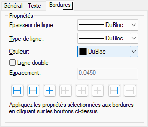 Gère l'aspect des bordures des cellules. Les propriétés de bordure sont l'épaisseur de ligne et la couleur des lignes de grille.