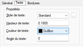Définit l'angle du texte. L'angle du texte par défaut est de 0 degré. Vous pouvez entrer un angle compris entre -359 et +359 degrés.