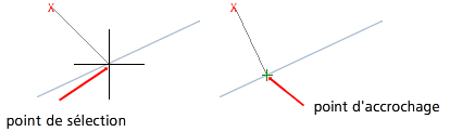 Remarque : Les résultats peuvent être différents si les accrochages aux objets Intersection et Intersection projetée sont activés.