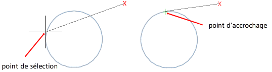 Les paramètres d'accrochage aux objets actifs vous permettent de définir un point d'accrochage en une position exacte d'un objet. Appuyez sur TAB pour passer d'une option à l'autre.