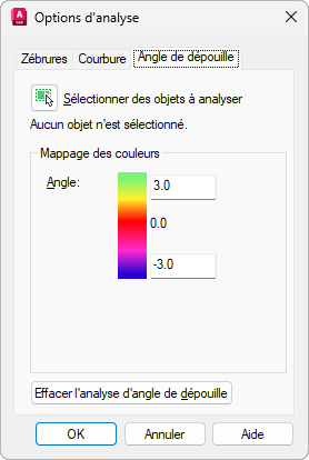 Angle de dépouille (onglet de la boîte de dialogue Options d'analyse)