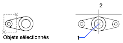 Les deux points spécifiés deviennent les extrémités d'une ligne par rapport à laquelle les objets sélectionnés sont réfléchis. Pour la réflexion en 3D, cette ligne définit un plan miroir perpendiculaire au plan XY du SCU qui contient la ligne de symétrie.