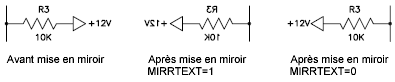 Remarque : Par défaut, lorsque vous effectuez la copie miroir d'un objet de texte, la direction du texte est inchangée. Définissez la variable système MIRRTEXT sur 1 si vous souhaitez que le texte soit inversé.
