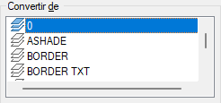Désigne les calques à convertir dans le dessin courant. Vous pouvez désigner des calques en les sélectionnant dans la liste Convertir de ou en utilisant un filtre de sélection.