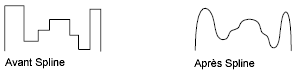 • Les options Insér, Déplac, Linéair et Epaiss. réajustent la spline automatiquement.