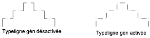 Génère le type de ligne dans un motif continu passant par les sommets de la polyligne. Lorsque cette option est désactivée, elle génère le début et la fin du type de ligne avec un tiret à chaque sommet. Cette option ne s'applique pas aux polylignes avec des segments coniques.
